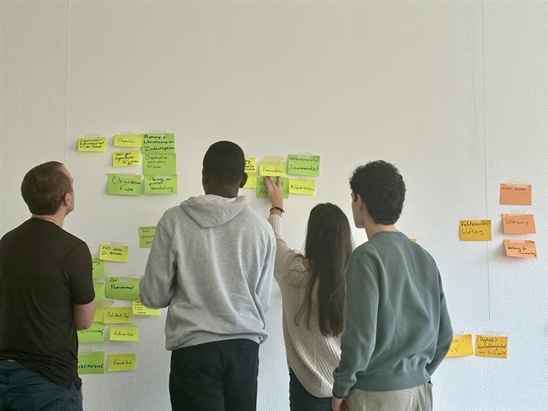 Da es noch früh am Tag war, widmeten wir uns vor dem Mittagessen der Struktur und Planung unserer Arbeitszeiten und dem Sortieren verschiedener Themenbereiche, die wir ansprechen wollten. Die Themenbereiche „Gestaltung des neuen SV Raumes“ und „SV Internes“ wurden, in dem ungewohnt hellen und freundlichen Raum, für den ersten Tag auserkoren. Auch nach dem Mittagsessen, ausgeteilt von Gesichtern mit verblüffender Ähnlichkeit zu uns bekannten, widmeten wir uns also in einer weiteren Arbeitsphase diesen Themen.