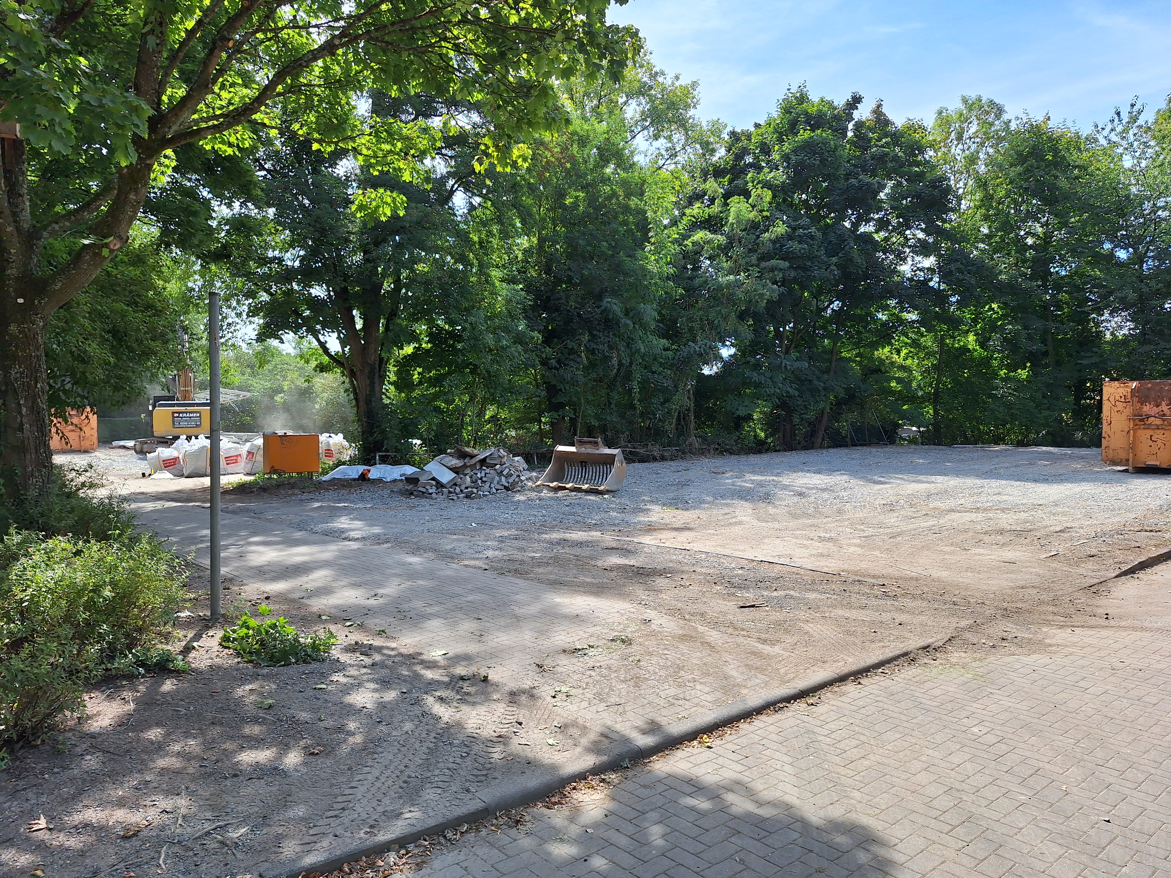 Eine ungewohnte Freude war es daher, dass die Stadt noch in den Sommerferien reagierte und den Abriss von A und B veranlasste - weg mit dem alten und her mit dem neuen! Mit vereinten Kräften unserer Lehrerinnen und Lehrer wurden die Klassenräume in der ersten Schulwoche entleert, überflüssiges Zeug, wie z.B Halloweendeko, wurde auf Nimmerwiedersehen in einen neuen Container überführt.