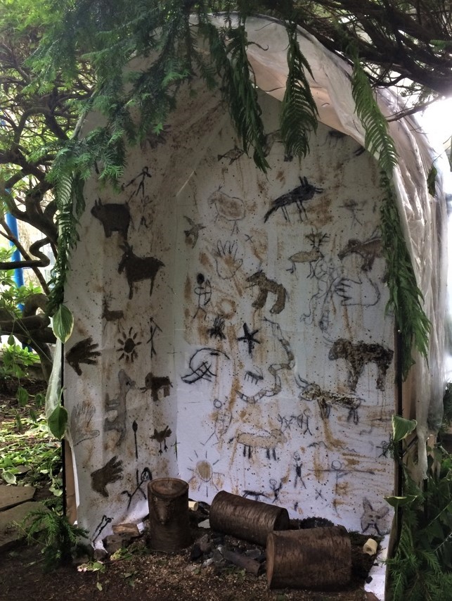 Höhlenmalerei samt Höhle (entstanden in einer Projektwoche)
